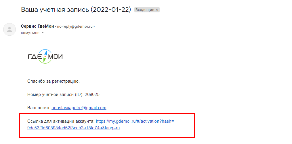 После внесения данных на указанную ранее почту придет письмо со ссылкой для активации учетной записи. Для окончания регистрации пройдите по ссылке активации в письме.