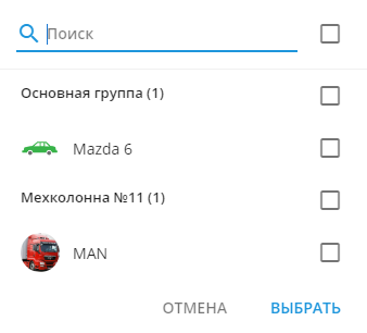 Выберите одно или несколько транспортных средств, для которых создаете сервисную работу