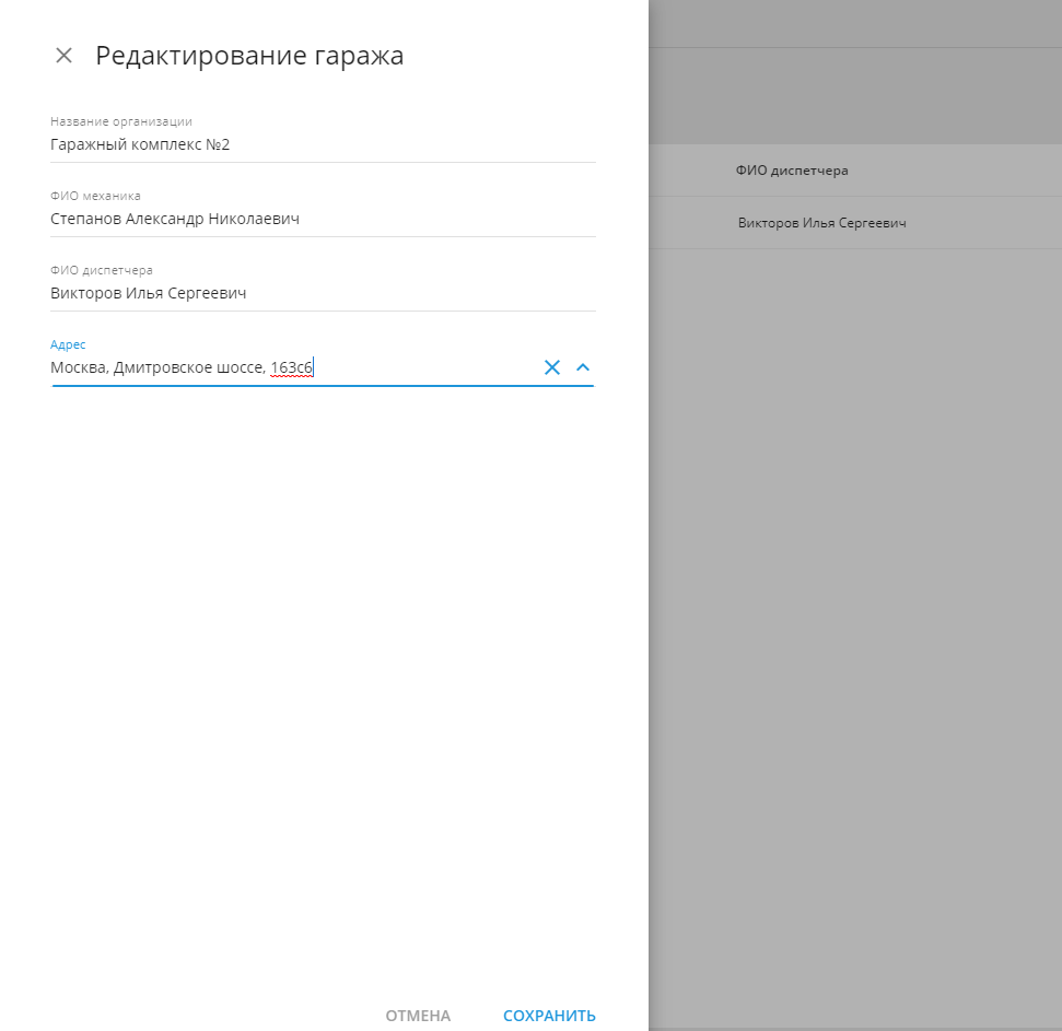 Если у компании несколько гаражей (филиалов), то рекомендуется создать записи для них и, соответственно, распределять весь транспорт по этим гаражам. В свойствах гаража можно указать: