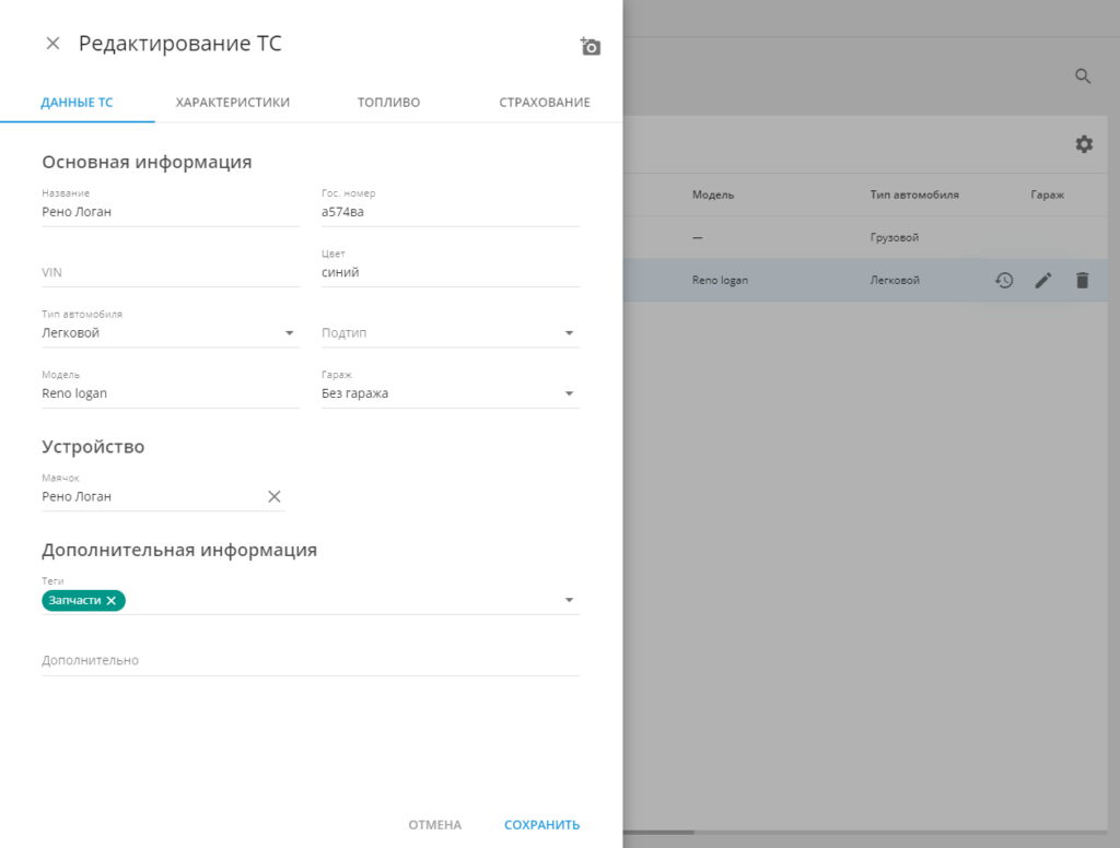 создавать и редактировать карточки транспортных средств