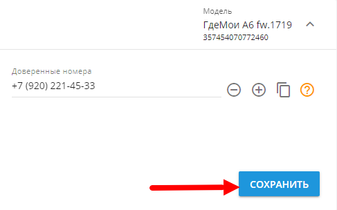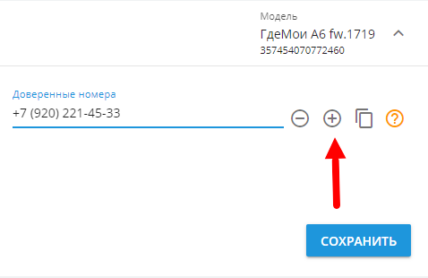 Если необходимо добавить еще один номер нажмите “+” . Для одного устройства можно добавить до 5 доверенных номеров.