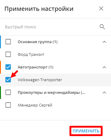 В появившемся списке отметьте устройства, для которых нужно применить такие же настройки.
