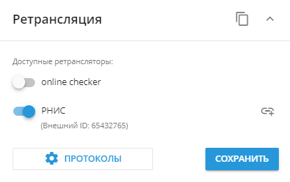 Настройка ретрансляции осуществляется из приложения “Управление устройствами” в портлете “Ретрансляция”.