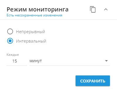 Настройки передачи данных и режим работы устройств задаются в панели “Режим мониторинга”.