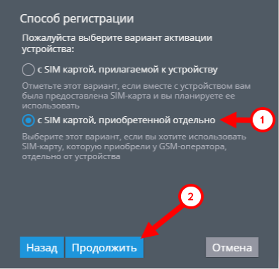 Выберите пункт “С SIM-картой, приобретенной отдельно” и нажмите “Продолжить”